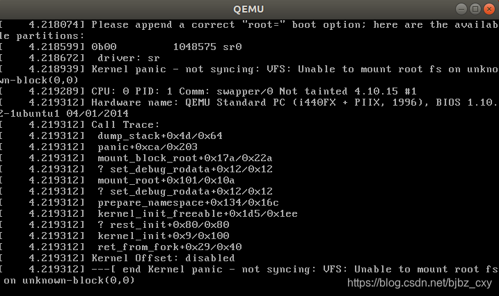 Linux内核在运行时需要文件根系统的支持,但是这里我们并没有生成文件系统,所以Linux会报这个错误
