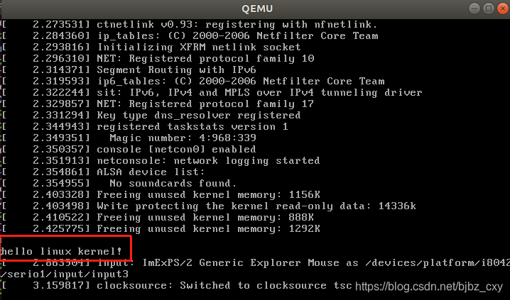 可以看到我们的“hello linux kernel!”打印出来了!