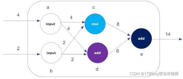 从上图需要理解一个东西叫做:边,边即起始输入数据源,上图的Input A与B都是边,即最外边最开始的视图节点称为边,后续的称为运算节点,一般边就是输入的向量。