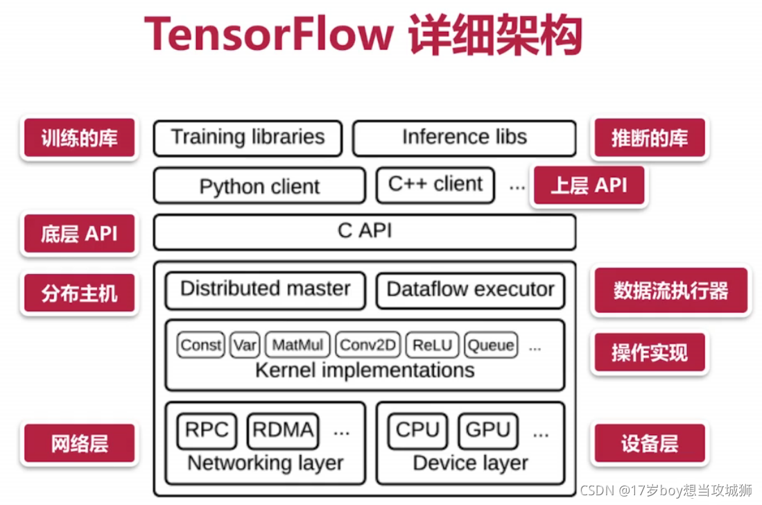 可以看到最底层API是C语言写的,这也代表Tensor Flow的移植性非常高