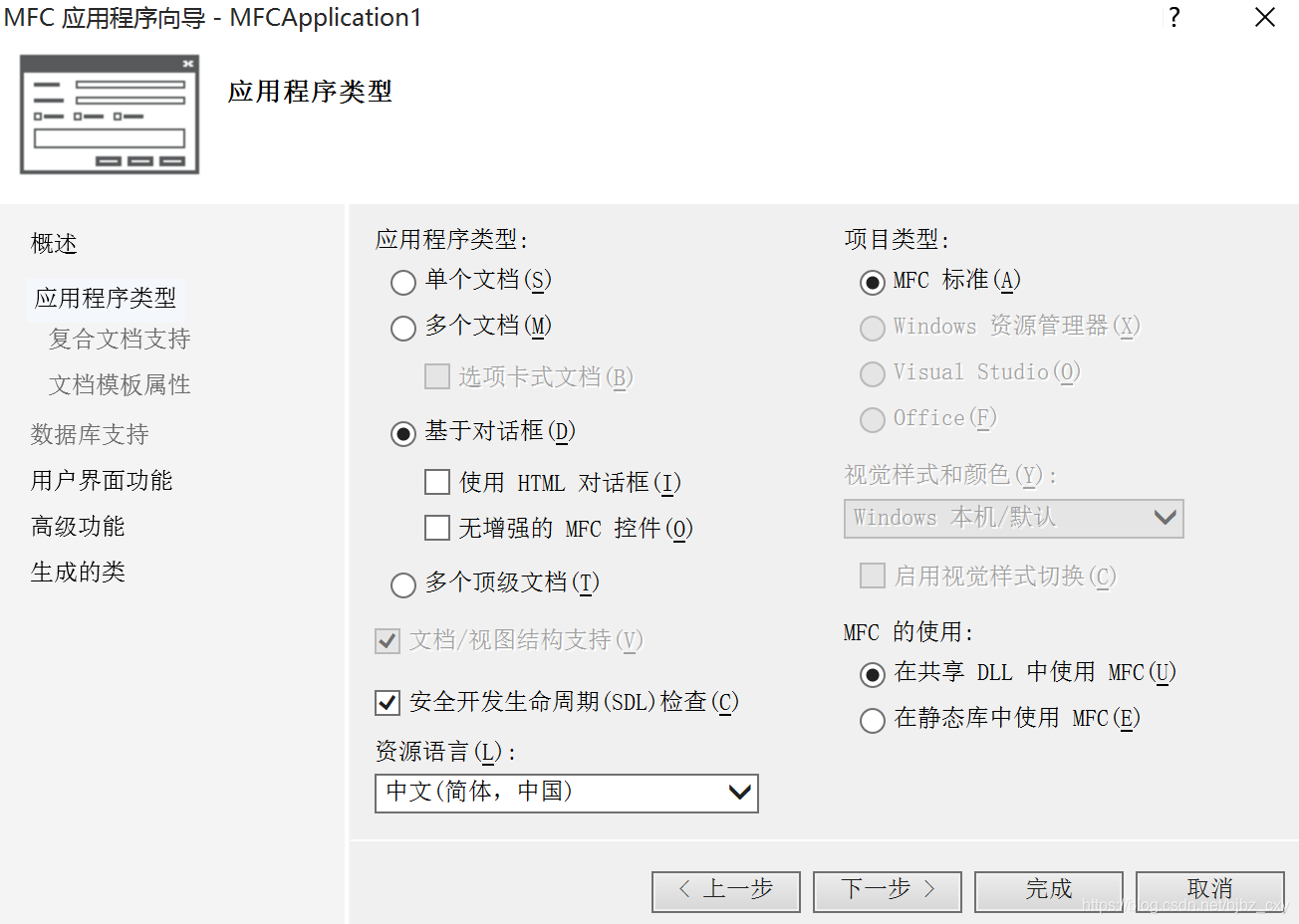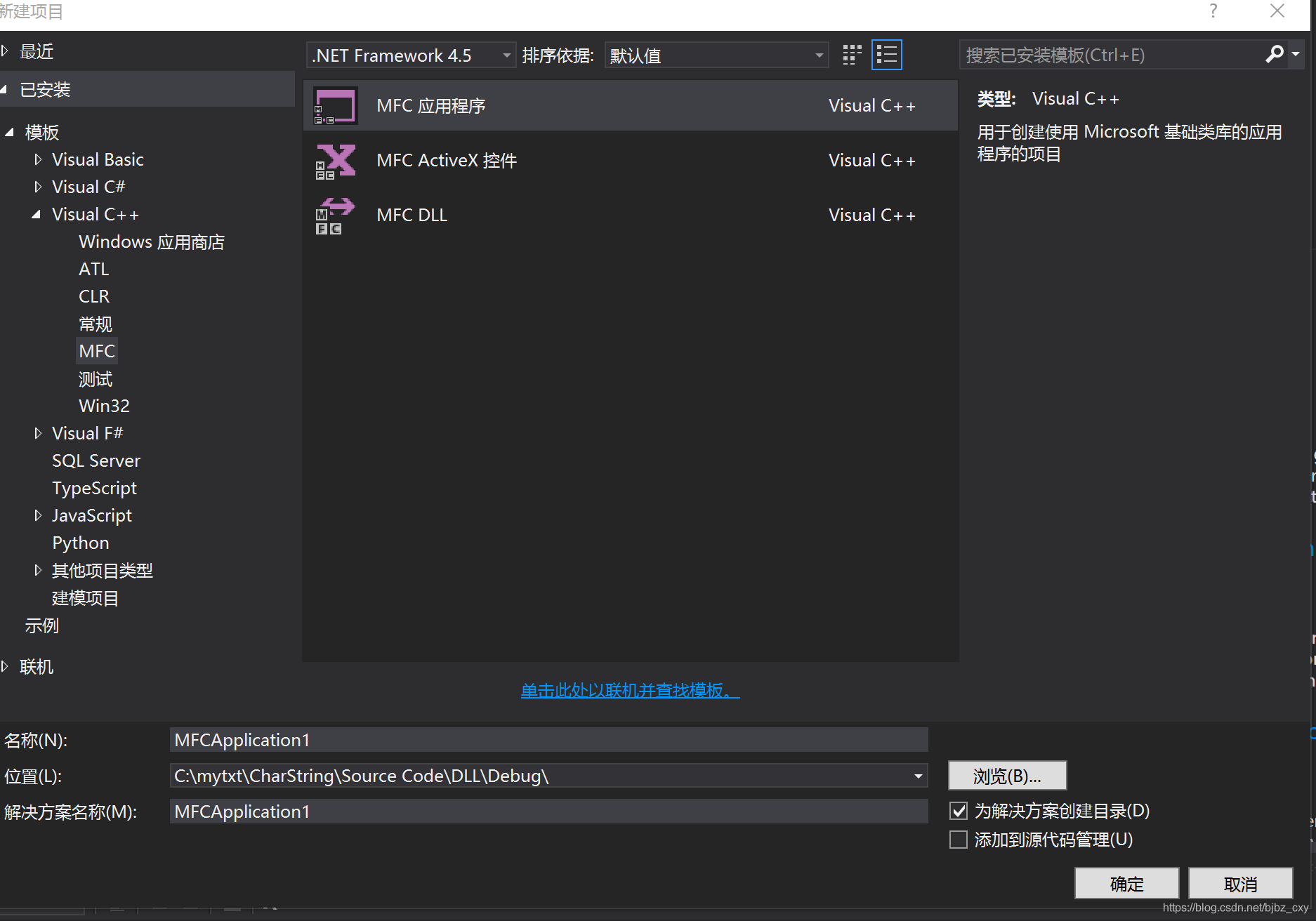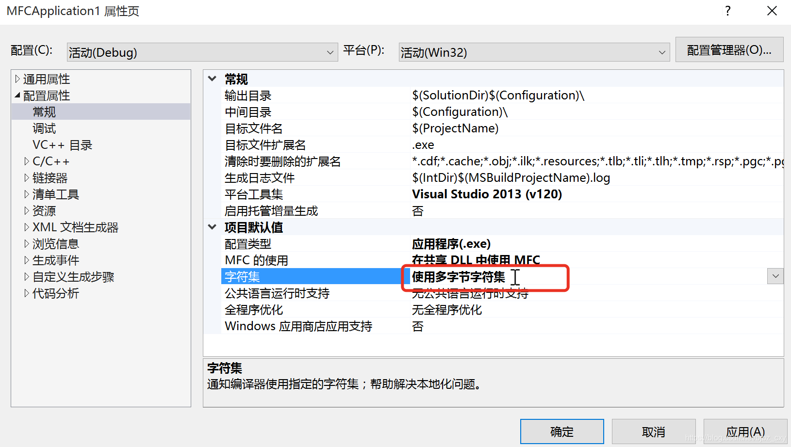 创建完成之后需要将程序的编码改成多字节不能使用unicode字节,因为免费的skn皮肤不能编译这一字节的程序,会报错(免费的使用的是多字节编码两者编码不能冲突,因为包含文件关系,我们会包含skn的皮肤库)