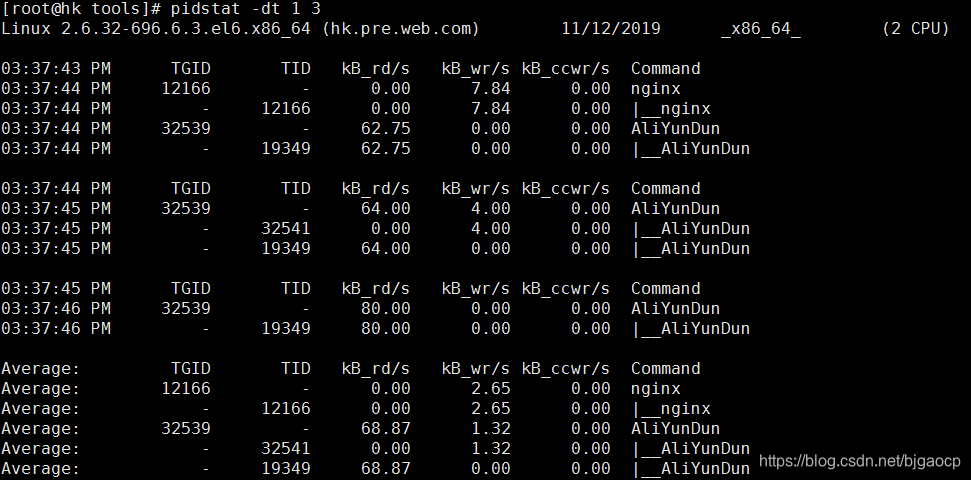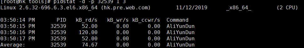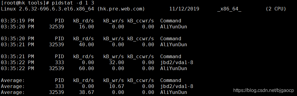 6 pidstat 默认输出CPU使用情况,还可以使用-d输出磁盘I/O统计信息