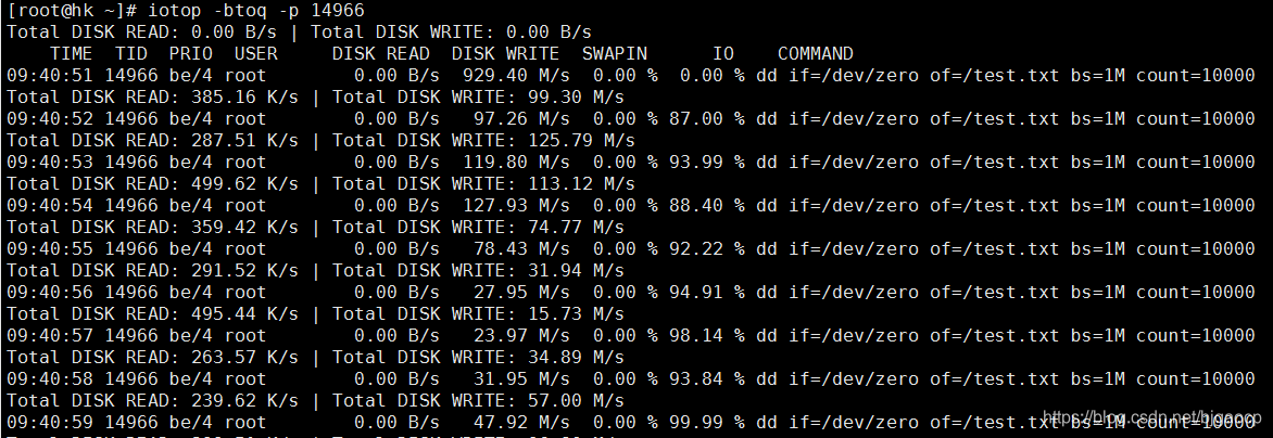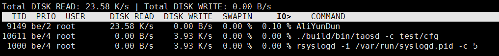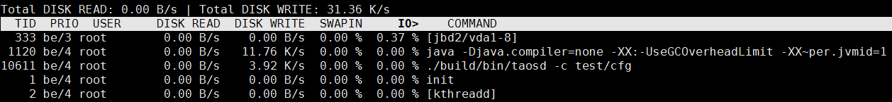 - -o,--only只显示正在产生I/O的进程或线程。除了传参,可以在运行过程中按o生效。