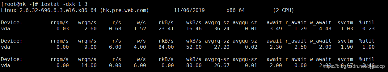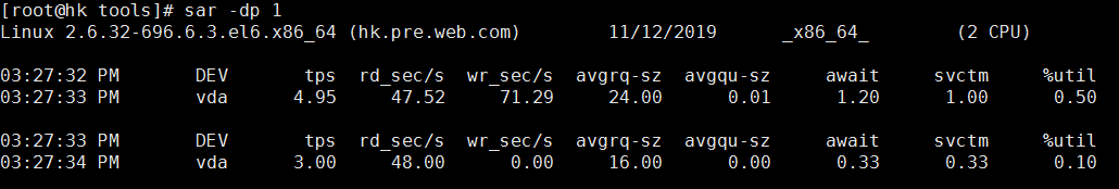 - DEV 磁盘设备的名称,如果不加-p,会显示dev253-0类似的设备名称,因此加上-p显示的名称更直接