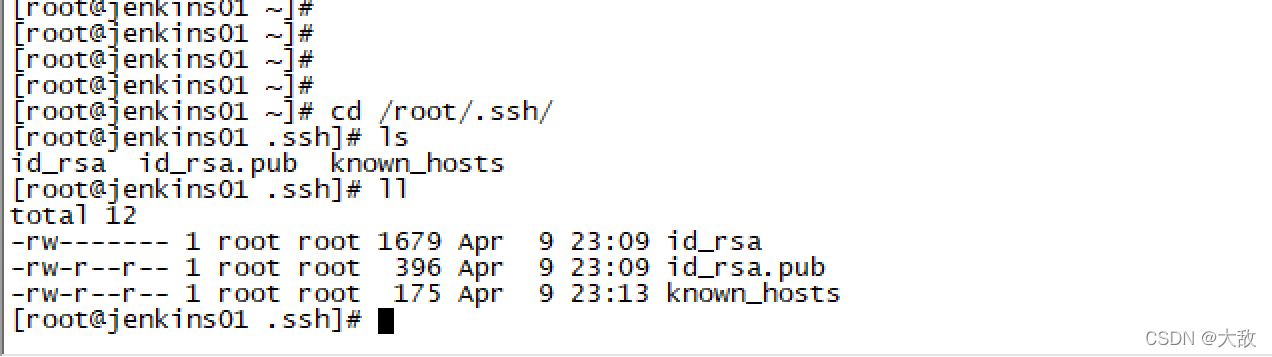 3)关于公钥私钥的生成,最简单的办法,在linux系统下(可以在jenkins的服务器里执行,因为是jenkins服务器要去链接gitlab),用root执行ssh-keygen命令,会在/root/.ssh/下面,生产两个文件,其中id_rsa.pub是公钥,id_rsa是私钥。将共要文件的内容,粘贴到如上的ssh key里,作为jenkins连接的认证,私钥在后面要用到。