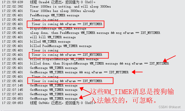 OutputDebugString(L"sleep done, then PeekMessage WM_TIMER message && msg.wParam == IDT_MYTIMER \n");