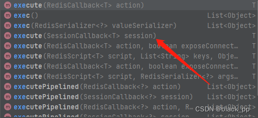 我们注意到,redistemplate有个execute()方法,内部的参数是一个SessionCallback类型的,而SessionCallback里面我们可以自定义很多的命令操作,然后一次性交给redisTemplate执行,达到事务的效果。