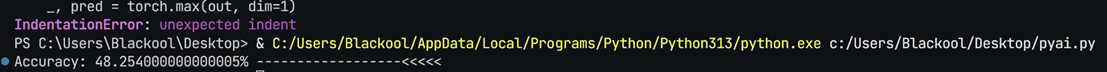 - 在第一次训练的时候花费时间过久(平均每0.1% 花费 一分钟),推测是神经网络过于庞大和冗杂,尝试增大学习率与减少训练次数,并简化神经网络。