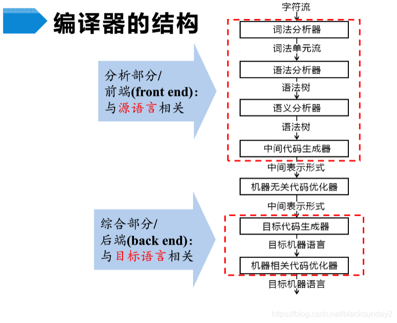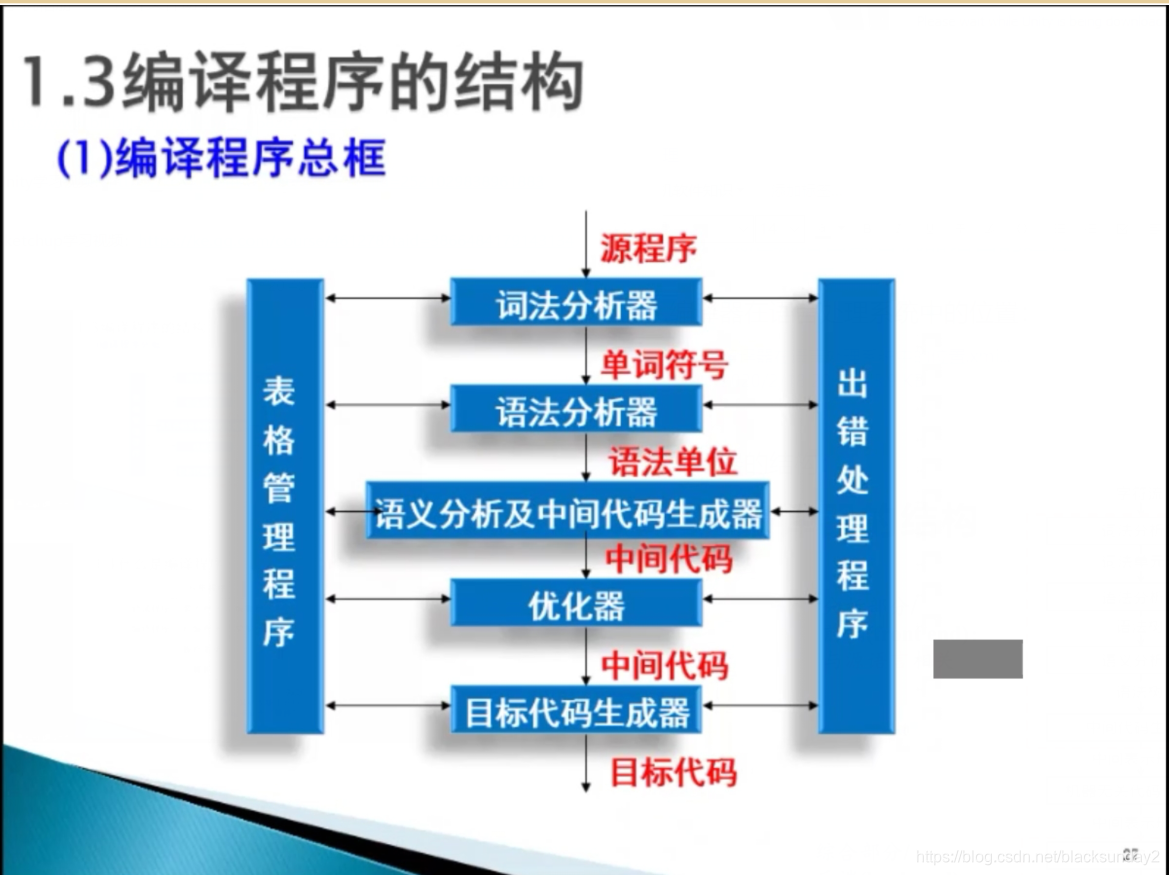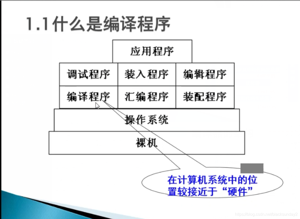 编译:将高级语言(源语言)翻译成汇编语言或者机器语言(目标语言)的过程语言翻译成汇编语言或者机器语言的过程