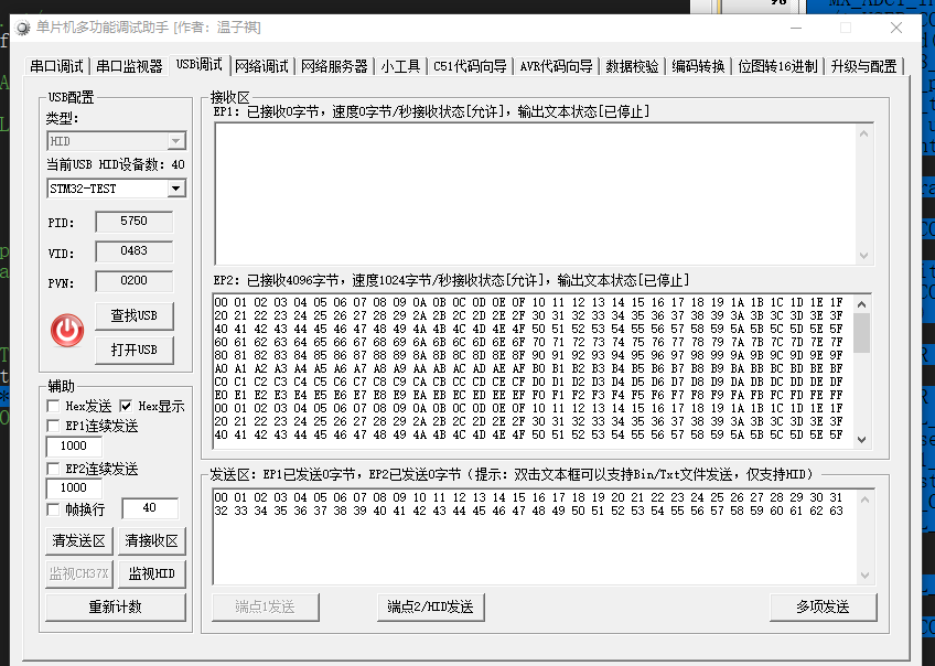 实现思路:stm32f103zet6单片机内置usb2.0模块,每次上传数据最大64字节一包,所以如果想要上传一个比如1024字节的数组,那么就需要进行拆包,然后分包发送。