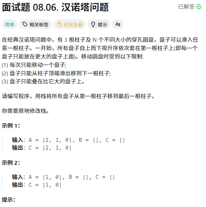 面试题 08.06. 汉诺塔问题 - 力扣(LeetCode)