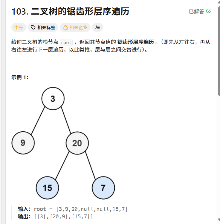 103. 二叉树的锯齿形层序遍历 - 力扣(LeetCode)