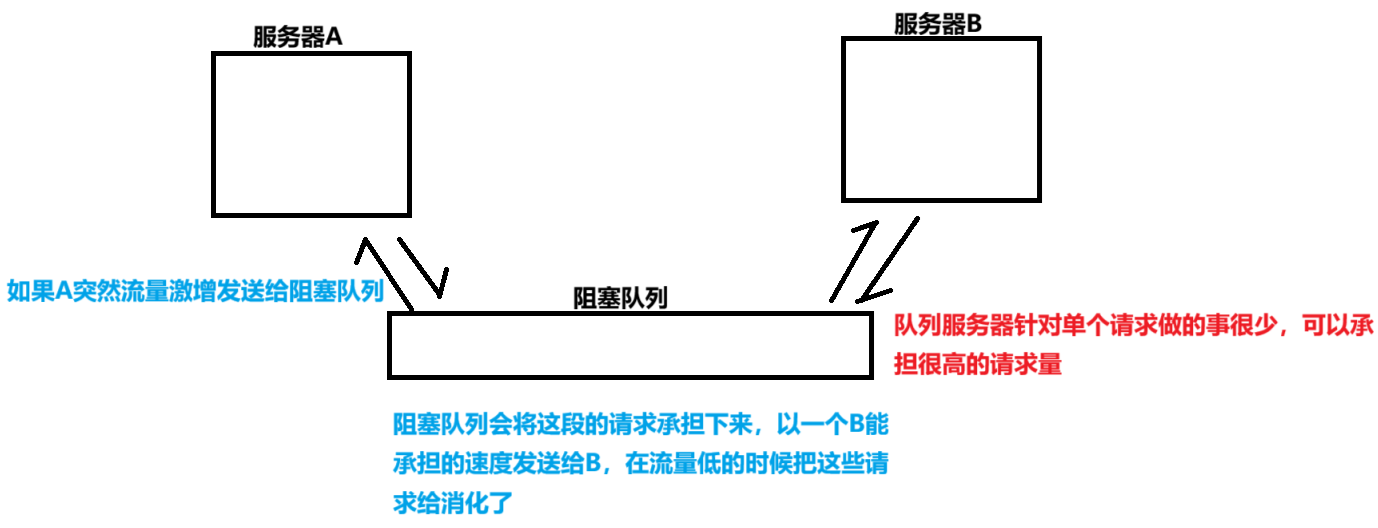 生产者流量激增存储到阻塞队列中,然后消费者按自己的速度慢慢的进行消费