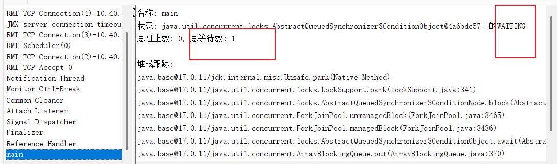 当前已经队列满了,如果再加就会进行阻塞不会执行
