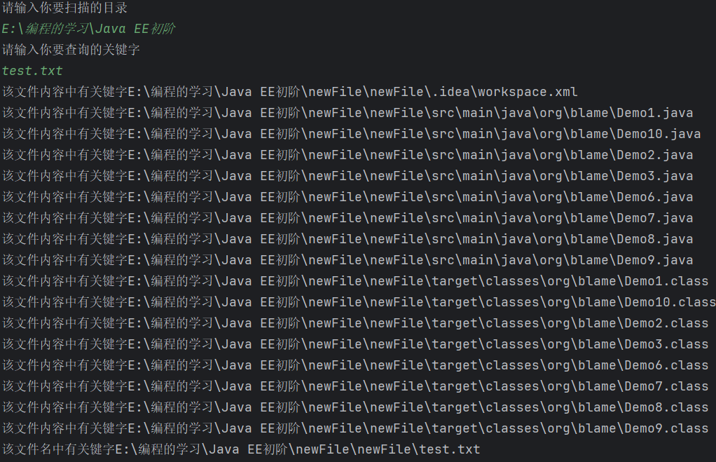 System.out.println("该文件名中有关键字"+file1.getAbsolutePath());