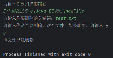 System.out.println("请输入你是否要删除,这个文件,如果删除,请输入 y");