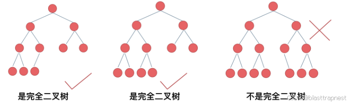在完全二叉树中,除了最底层节点可能没填满外,其余每层节点数都达到最大值,并且最下面一层的节点都集中在该层最左边的若干位置。若最底层为第 h 层(h从1开始),则该层包含 1~ 2^(h-1) 个节点。