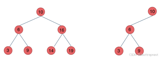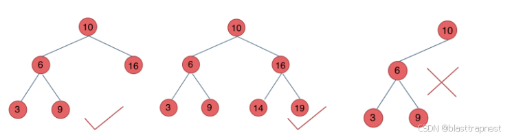 - 若它的右子树不空,则右子树上所有结点的值均大于它的根结点的值;