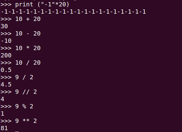 | // | 取整除 - 向下取接近商的整数 | 9//2 =4 , -9//2 = -5 |
