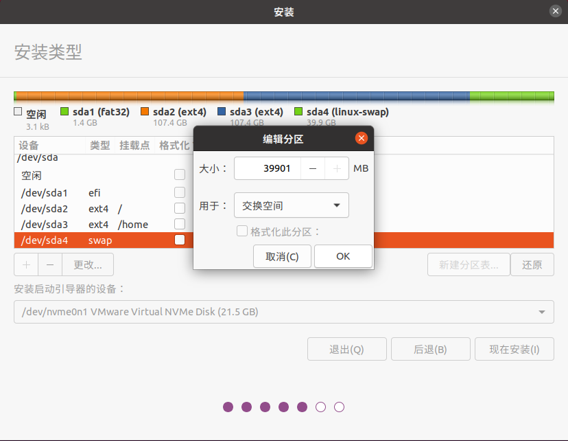 - - swap分区 相当于内存,划32G以下即可,如果存储空间大就16GB ,小的话8G足够了