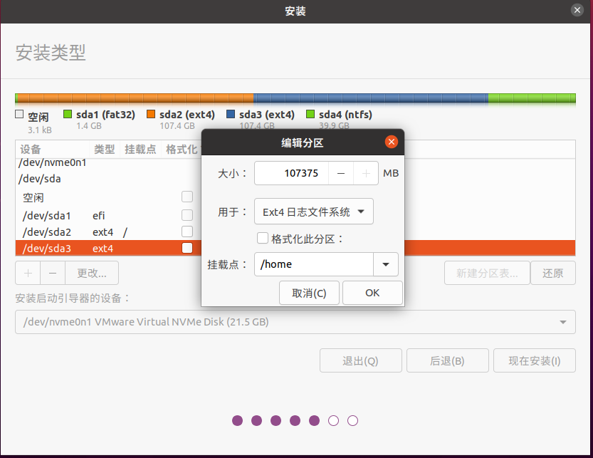 - - /home分区 自己的数据管理方便些,习惯单独划一个/home分区,大小和/分区相近