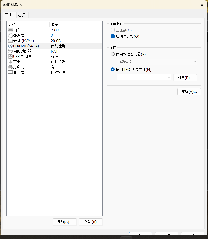 插入硬盘,确保硬盘连接在你刚刚建立好的虚拟机上