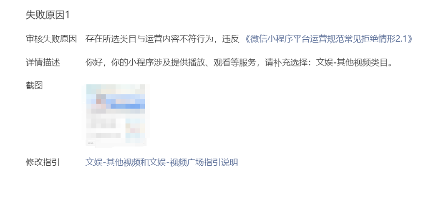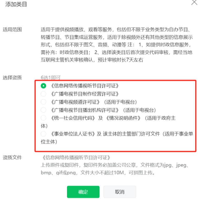 经过官方的指引需要补充 文娱-其他视频类目,在补充的过程中发现需要提交资质,如果有资质的忽略下文,直接提交资质,如果没有资质的请看以下解决方案