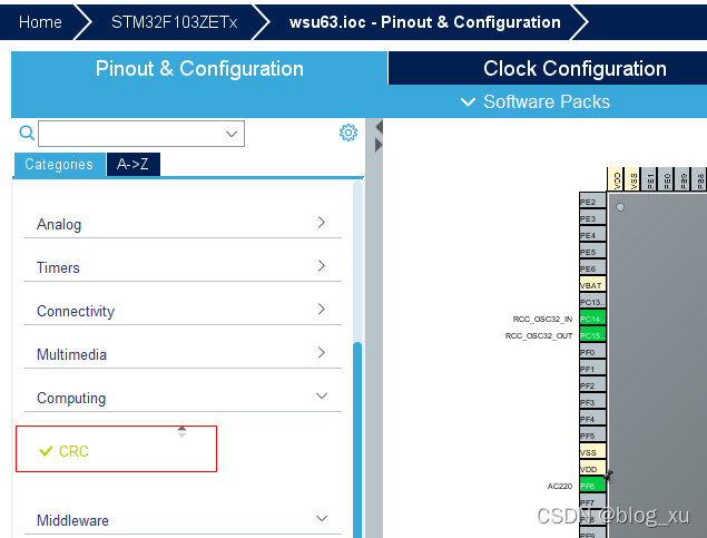 - 我使用的是STM32F103ZET6单片机,用cubeMX新建的工程(使能crc即可加载\STM32F1xx_HAL_Driver\Src\stm32f1xx_hal_crc.c文件)