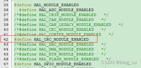 - 打开#define HAL_CRC_MODULE_ENABLED,在.\Core\Inc\stm32f1xx_hal_conf.h中第42行