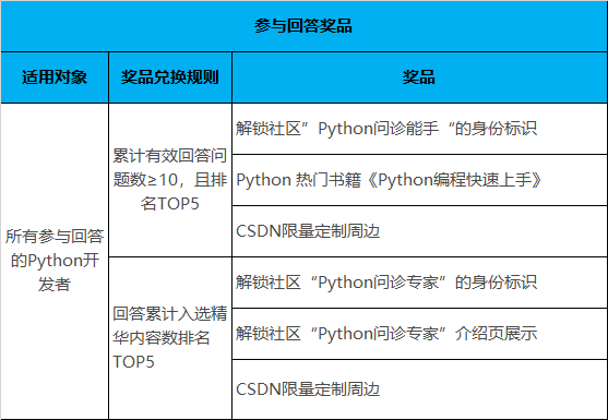 【Python专家门诊】开启有奖问答活动,旨在帮助初学者解决Python学习中的难题。活动时间为2020年12月10日至14日,面向所有Python爱好者。参与者可通过提问或回答获得奖品。