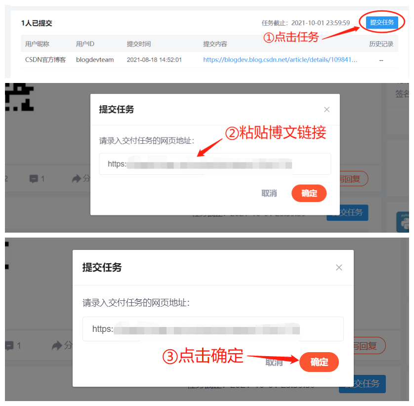 3、创作结束后选择自己想投的社区↑↑↑,然后在社区活动贴下方选择提交任务,具体参考向下看↓↓