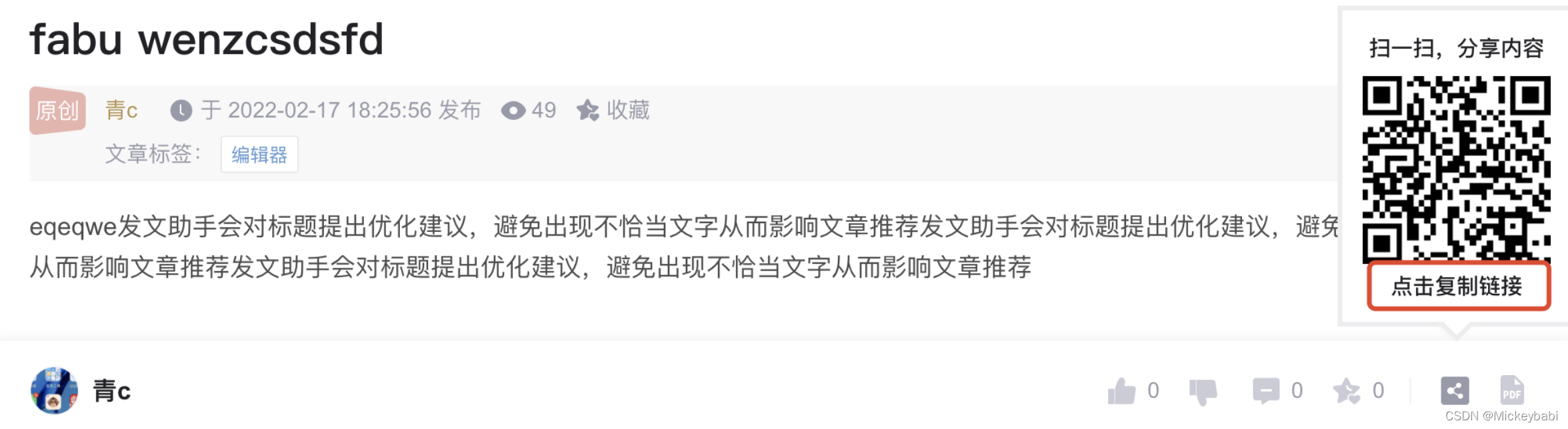 文章链接:测试一下读者分享功能_测试0901-1-优快云博客,即被分享博文的链接;