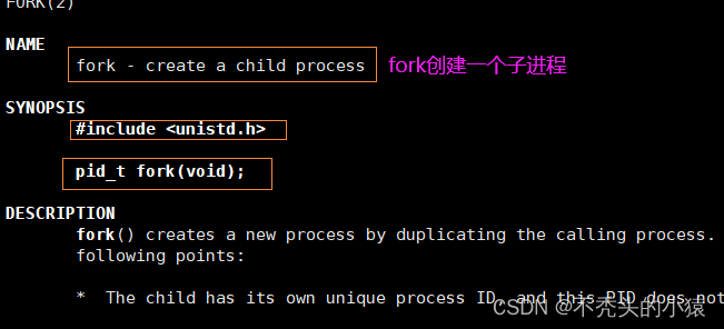 fork 功能:创建一个子进程 fork 特点: 1. 创建失败返回-1,创建成功给父进程返回子进程id,给子进程返回0. 2. fork后会从原来一个进程分流分两个进程(父进程和子进程),fork后两进程共享后面代码。
