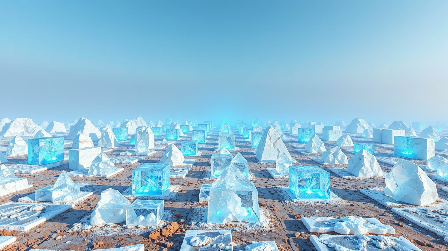 作图提示词:Modern salt crystallization fields forming geometric formations with augmented reality poetry projections, cyan LED arrays piercing morning fog through prismatic salt structures. Shot with symmetrical framing using 24mm lens, capturing fractal light patterns on crystalline surfaces contrasting with coastal terrain textures.