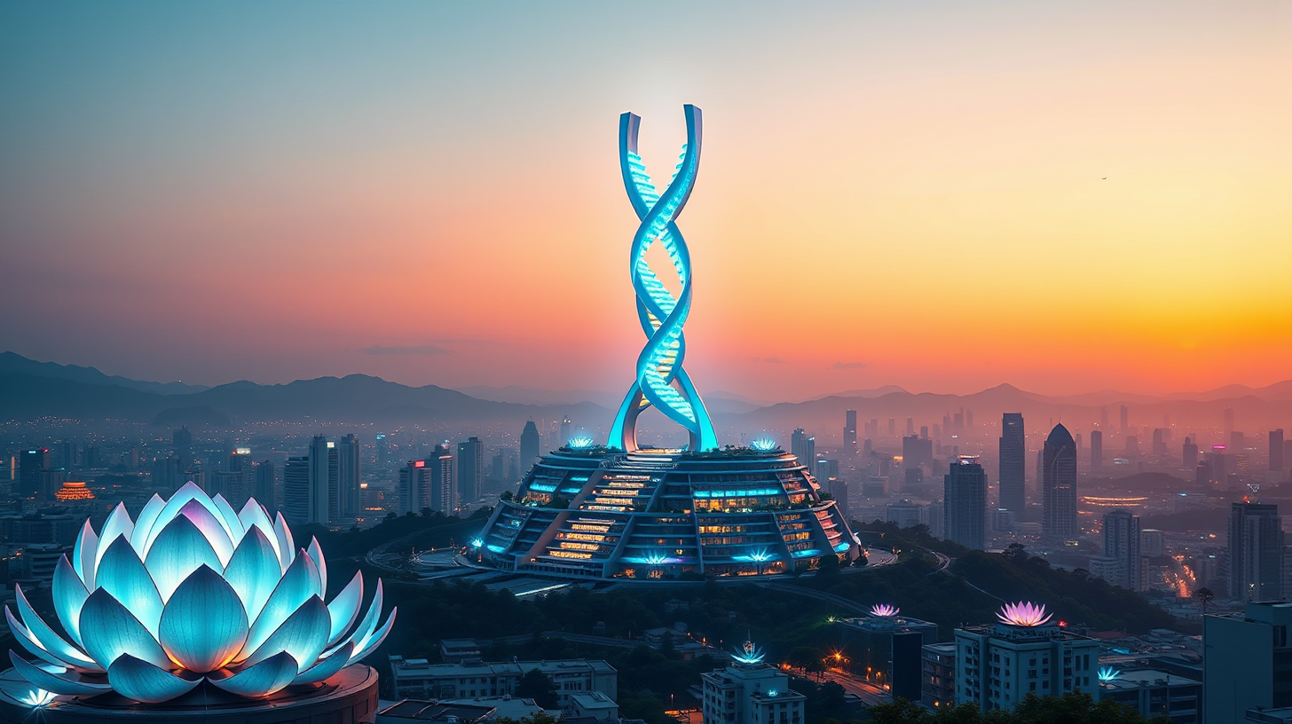 在河南郑州,古老文明与未来科技碰撞出璀璨火花。商都遗址下,纳米机器人让青铜器纹路化作悬浮数据流,甲骨文重组为能源方案;沿黄生态带的量子堤坝将水波动能变为全息投影,少年的折纸船成为清洁能源收集器;高铁东站的磁悬浮轨道编织成牡丹形态,清洁机械群跳起优雅华尔兹;少林寺中,武僧与AI共练算法,代码写入武学套路;暴雨中的摩天楼群变身抗洪蜂巢,纳米修复液守护旧城;二七塔遗址的双螺旋光塔与全城阳台的光合膜,将焦虑转化为治愈极光。