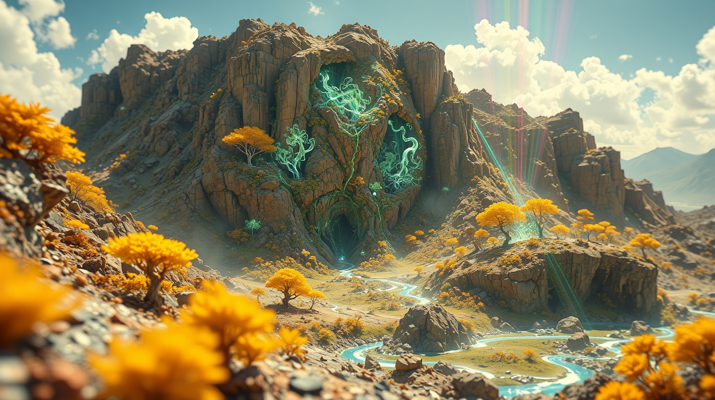 作图提示词:Archaeo-robotic stabilization of Dabie Mountain strata using focused photonic fields. Multispectral holograms display quantum tea integration with fossilized ecosystems. Shot with focus bracketing at f/16, polarized lighting revealing mineral-mycelium interfaces, time-blend exposure capturing prismatic stabilization beams in amber atmospheric conditions.
