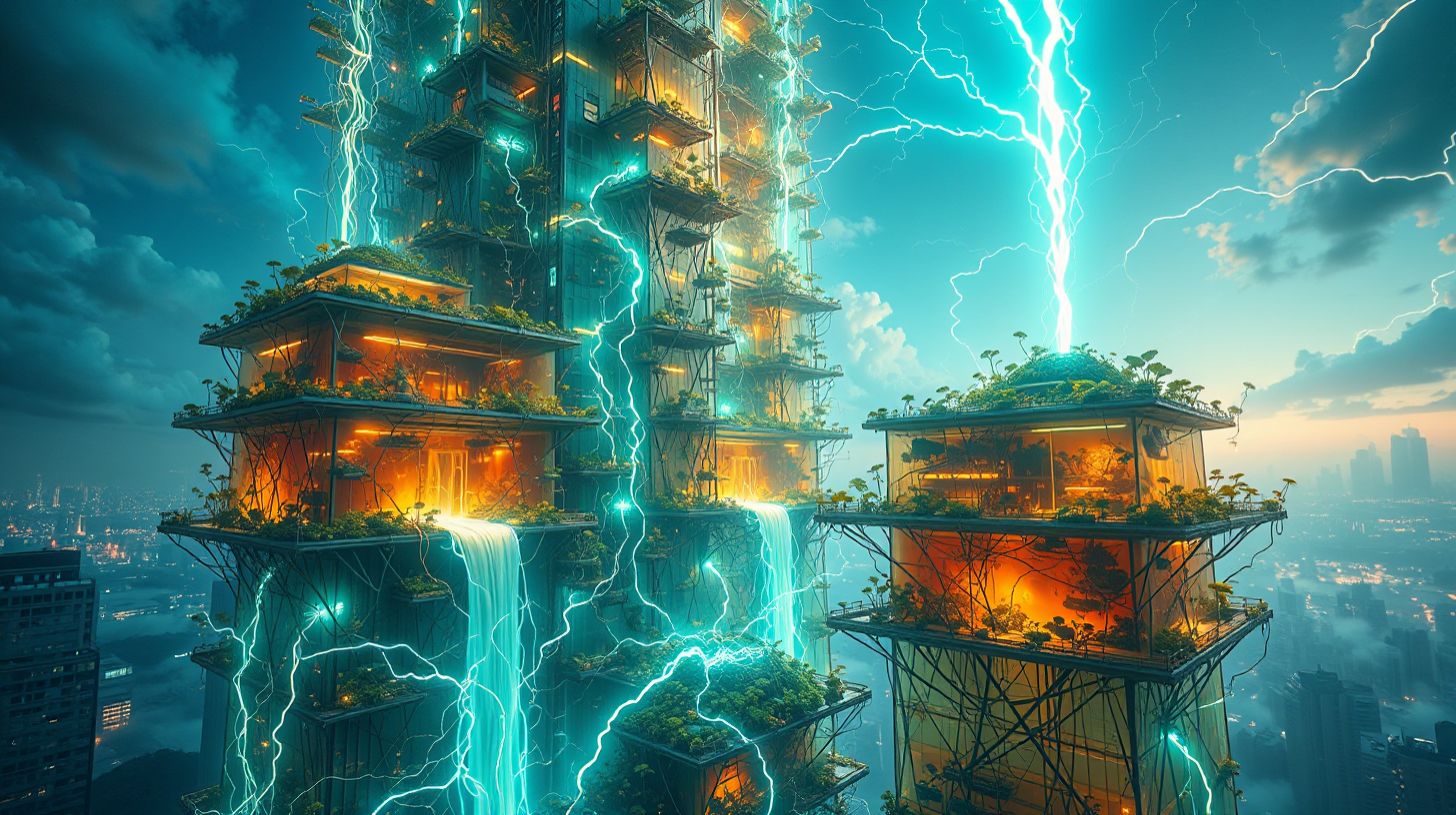 作图提示词:Skyscraper biofacades pulsating with fermented tea circulation systems, autonomous dispersion platforms orchestrating aerial liquid convergence. Microbial charge patterns visualized through long-exposure electrophotography, shot at ISO 800 with 85mm macro lens capturing laminar flow details and bioelectric coronal discharges.