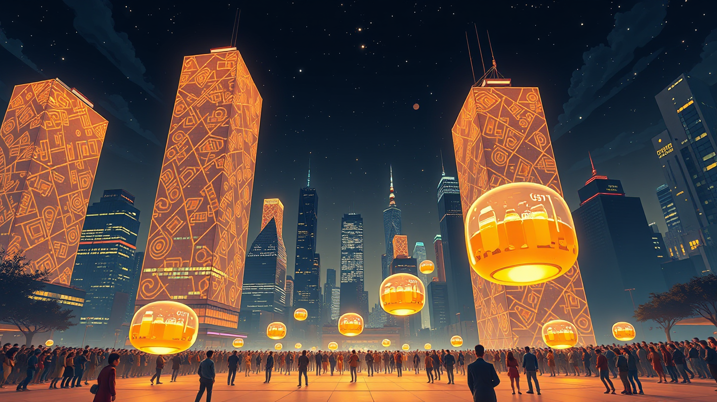 描述:啤酒节期间,全城建筑立面同步绽放琥珀色全息啤酒花,空中悬浮着装载精酿的微重力气泡。市民举杯时,神经传感器将愉悦情绪转化为集体光影交响乐,建筑共振产生欢庆脉冲波,智能泡沫爆破成星云图谱,液态欢乐在量子层面共振,编织出科技与狂欢交织的光之盛宴。