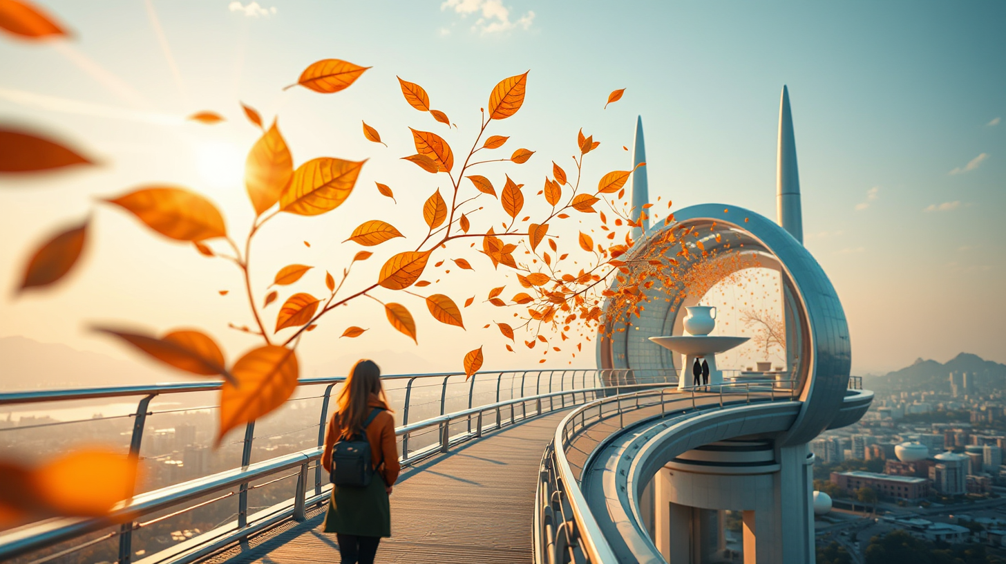 作图提示词:An architecturally stunning magnetic levitation skybridge in futuristic Sanming, where holographic Da Hong Pao tea leaves unfurl in midair with photorealistic detail. The interactive installation releases visible tea aroma molecules in delicate fractal patterns when pedestrians pass by, captured in medium close-up with shallow depth of field. In the background, a zero-gravity tea room features floating ceramic utensils in microgravity, rendered with ultra-realistic materials and subsurface scattering. The composition uses warm golden-hour lighting with vibrant color contrast between the orange tea leaves and cool bridge materials, employing cinematic anamorphic lens flares and atmospheric perspective for depth.