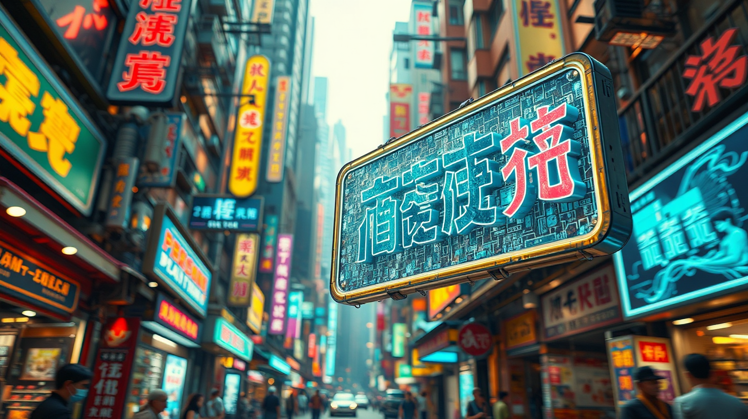 作图提示词:A detailed street-level view of Mong Kok in 2180, where swarm nanobots with graphene manipulators retrofit historic neon signs into adaptive holographic displays. The scene uses Dutch angle composition to heighten dynamism, with macro-lens clarity on the nanobots’ precision work. Lighting contrasts warm neon remnants with cool holographic projections, creating vibrant color juxtapositions. The depth-of-field gradually blurs background elements to focus on a central transforming sign, captured with motion blur to emphasize the nanobots’ rapid activity.