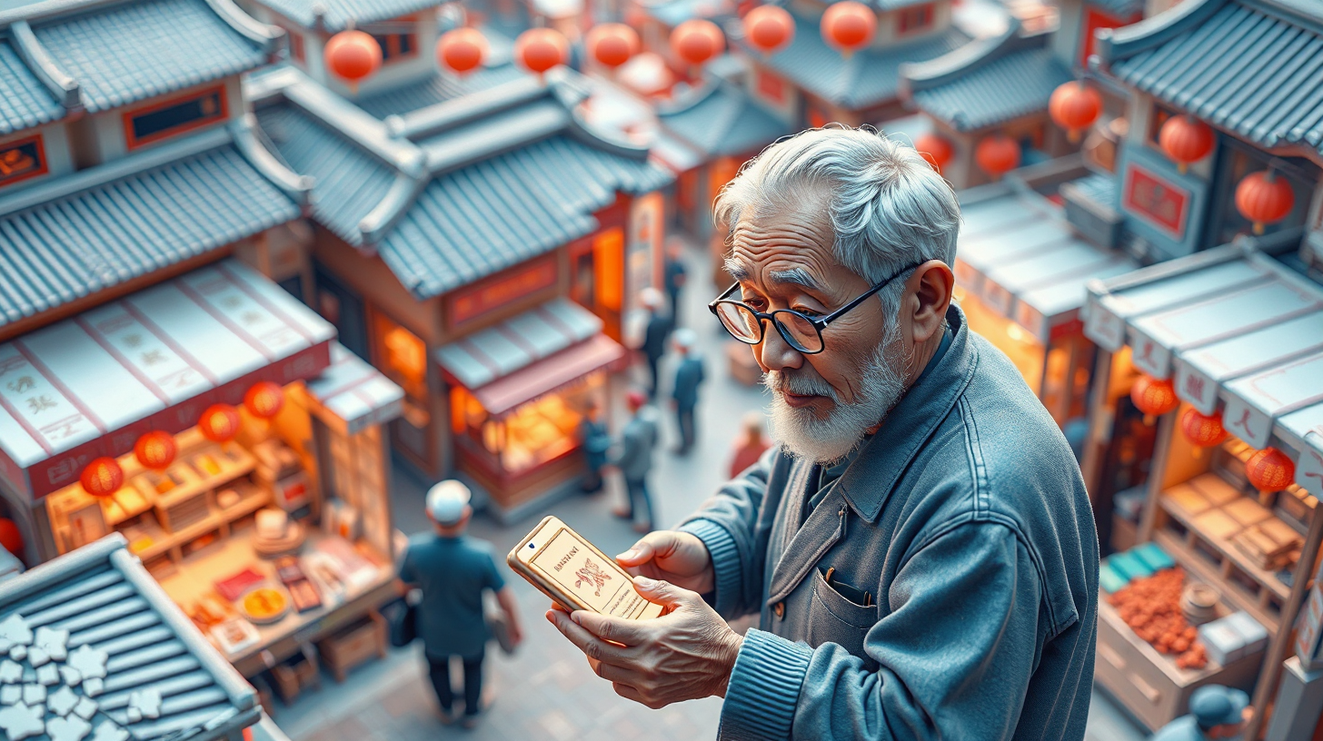 作图提示词:Overhead close-up of Huaqiangbei’s three-dimensional market showing nano-material stalls in transformation, with makers using neural interfaces. Spotlight on an elderly craftsman merging paper-cutting art with quantum holography to create Lingnan story devices. Macro lens detail with focus stacking for crisp textures, using high-key lighting to enhance vibrant colors. Composition follows rule of thirds with device as focal point, shot at 1/250s to freeze dynamic stall movements.