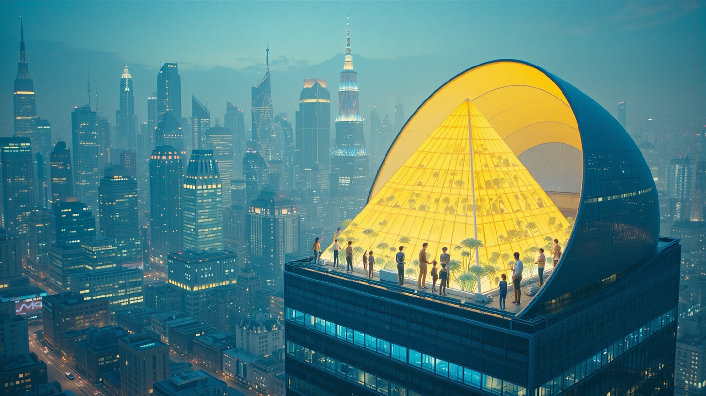 作图提示词:The quantum cloud observatory atop Ping An Finance Centre at midnight, where neural-interface towers translate collective consciousness into Bose-Einstein condensate light sculptures. Photographed with a 14mm astrophotography lens at f/2.8, ISO 6400 for 30 seconds to capture both city lights and quantum luminescence. Lighting combines cold cathode mood lighting with the warm bioluminescence of genetically engineered observation plants. Color theory applies simultaneous contrast between indigo plasma discharges and amber urban glow. Composition uses the skyscraper’s parabolic curve to frame the central light phenomenon, with inverted pyramid negative space.