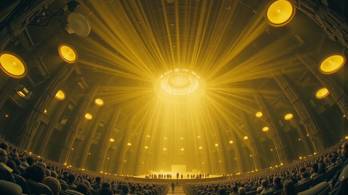 描述:矿洞改造的球形地热音乐厅里,黑色的玄武岩柱如远古巨人般矗立,柱身镶嵌的共振光源随着地质韵律脉动着金色能量。矿工的后代站在指挥台,手中的控制器将地震预警系统的数据转化为交响乐谱,每一次挥动,岩柱便发出对应的音浪,金色的光纹在空气中形成漩涡,如同一首看得见的地心之歌。当地心频率达到7.8赫兹时,最年长的听众缓缓摘下助听器,闭上眼感受着这来自地球深处的共鸣,仿佛与千万年前的地质记忆相拥。