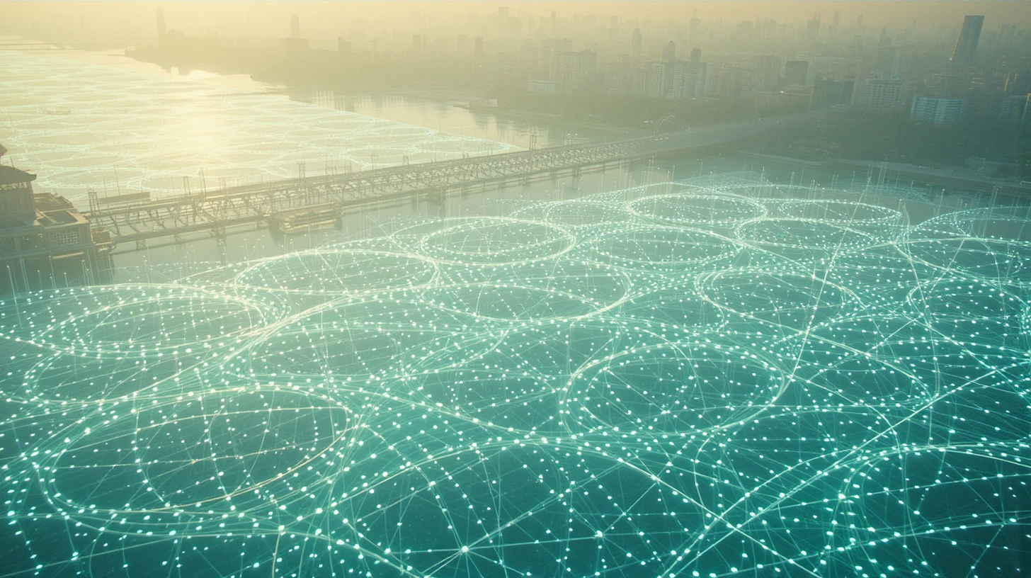 作图提示词:anime surrealistic fantasy, A breathtaking aerial view of the Han River at dawn, its surface covered with shimmering nanotech particles forming dynamic light patterns that constantly rearrange like quantum poetry. The water glows with an ethereal blue-green luminescence, reflecting the first golden rays of sunrise. The scene exudes a serene yet mysterious atmosphere as the light patterns dance and transform with unseen energy. Futuristic Chinese architecture lines the distant riverbanks under a soft morning haze. .