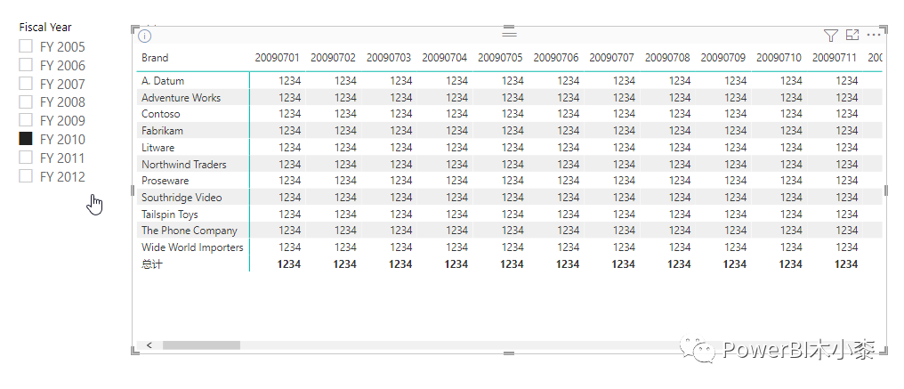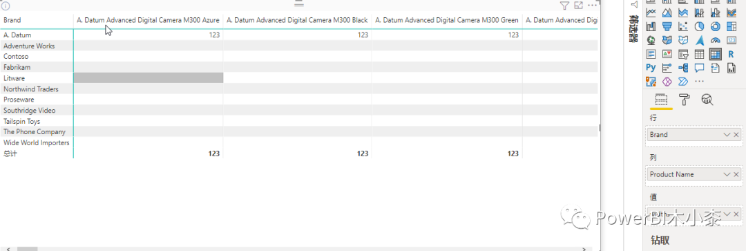 在Excel中我们可以很容易地对所有列设置为统一的列宽,然而PowerBI中矩阵并没有给我们提供这样的功能,但我们仍然可以通过一些小技巧来实现。