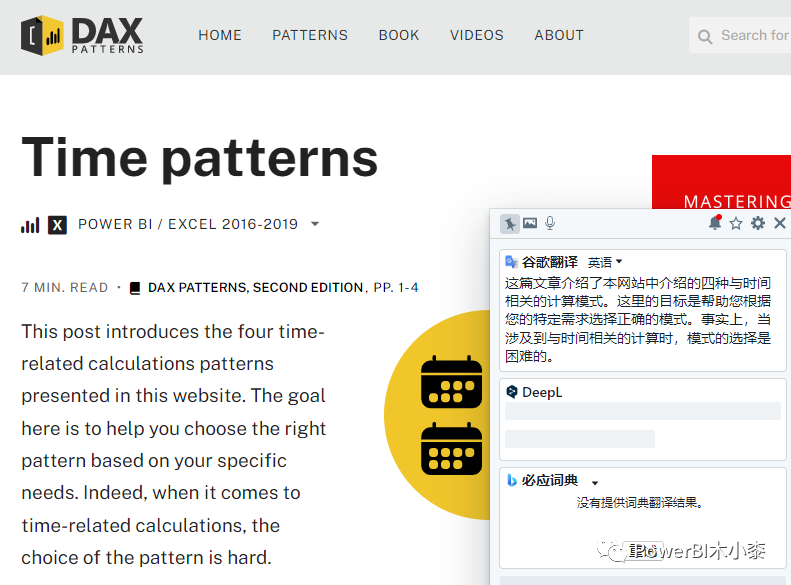《dax设计模式》目前还没有官方中文版,网上有人翻译了下,但这个也可以在网上直接在线查看的,英文不好的,也可借助翻译工具来阅读。