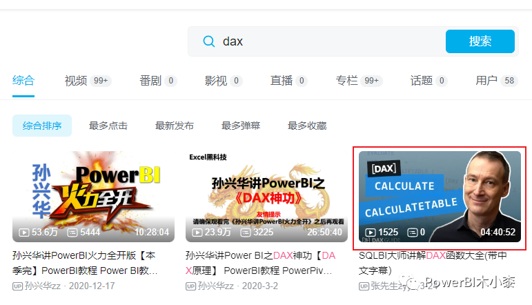 当然,如果习惯通过看视频来学习的,B站上也有很多学习视频,比如SQLBI的视频就有人搬运过来了,这里顺便说下PowerBI B站分享第一人孙兴华,他的视频不是很建议,路子有点儿野,不过他的视频却是从入门到进阶都有的。