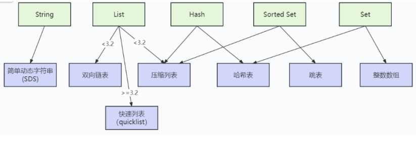 type字段:表示当前对象使用的数据类型,Redis主要支持5种数据类型:string, hash、 list,set,zset。可以使用type { key}命令查看对象所属类型,type命令返回的是值对象类型,键都是string类型。