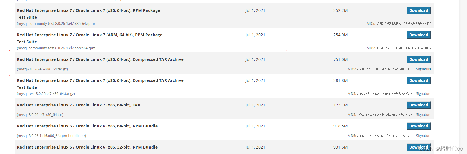 tar xzvf mysql-8.0.26-el7-x86_64.tar.gz