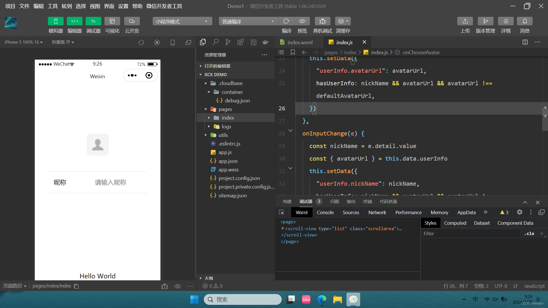 5. 调试器:位于编辑器下方,用于调试小程序的代码。调试器提供了控制台、网络、性能、存储、日志等调试功能,帮助开发者定位和解决问题。